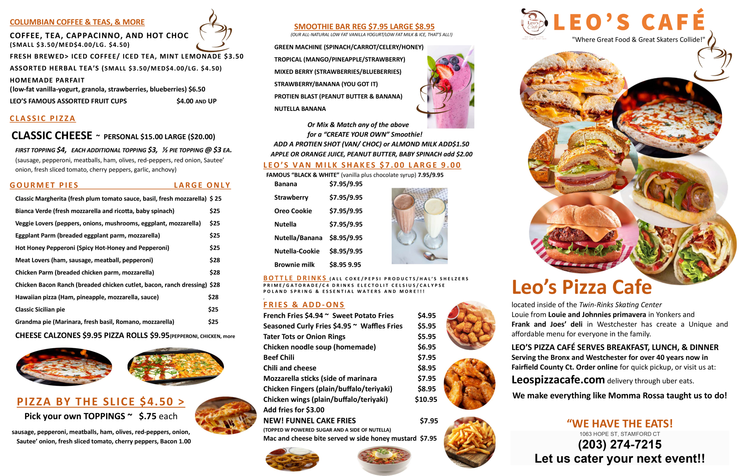 Join us for a fulfilling breakfast, luxurious lunch, delightful dinner, an expertly catered event, or party and savor the unforgettable, unique flair of our fresh homemade Italian American dishes and more. We also cater outside events call for more details!
